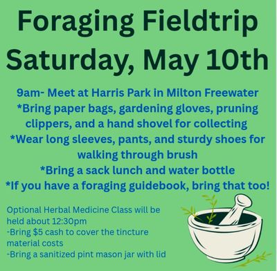 Join with other herbal enthusiasts for a 'herb wildcrafting' experience in the canyon above Milton Freewater, Oregon. Practice plant identification, gather herbs for personal use, and learn how to prepare herbal medicines.